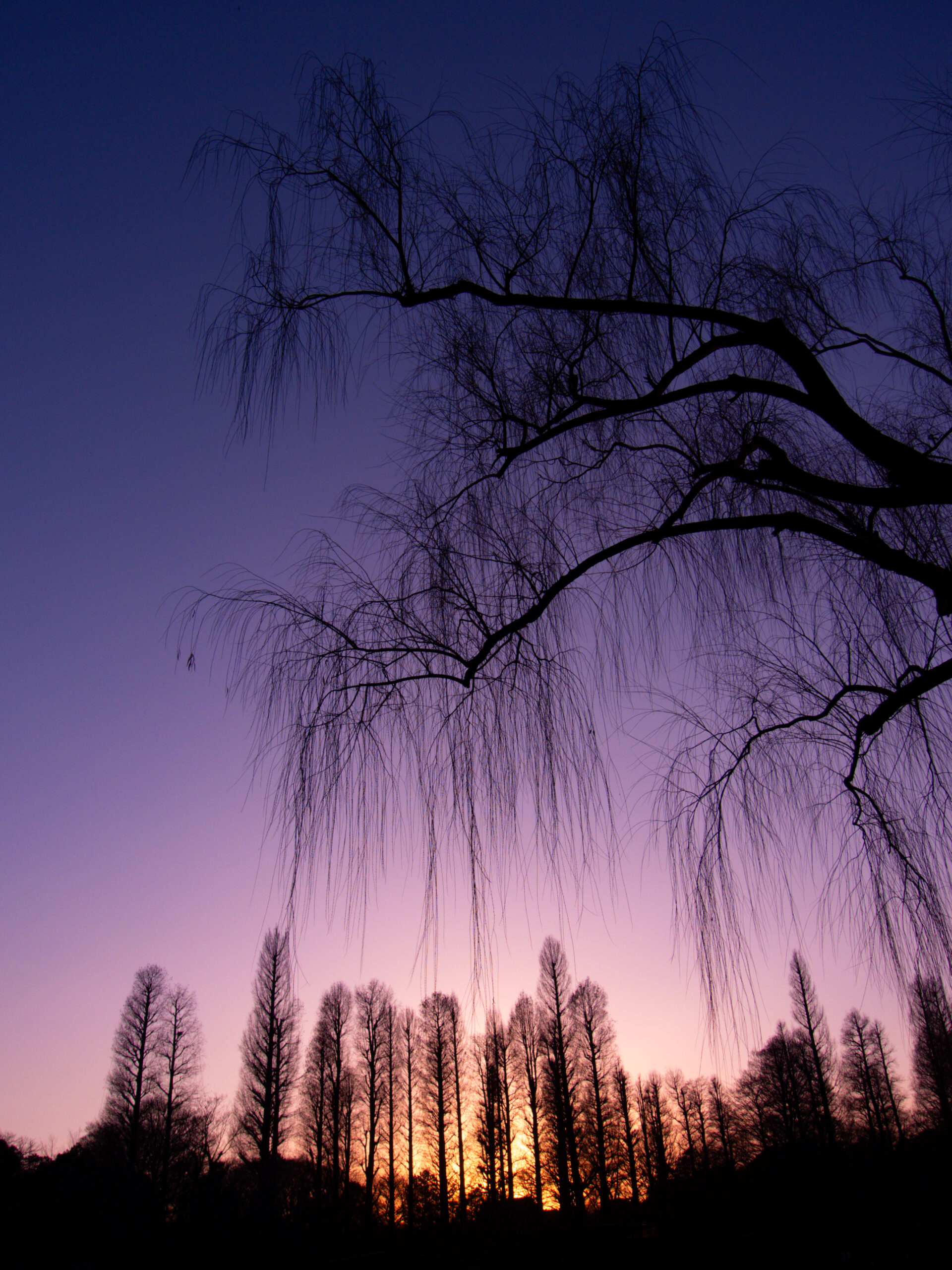 冬のご褒美 Street 2026.01.18 武蔵野の冬、マジックアワー。井の頭池のほとりで、琥珀色の光を背負った木々が美しい模様を描き出す。都会の喧騒を忘れさせる静かな公園で、温かいコーヒーとともに過ごす至福のひととき。